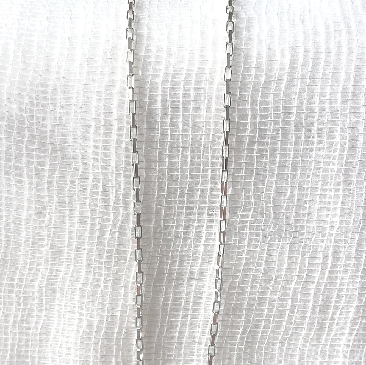 Cadena Plata con eslabón cuadrado 1,2mm. Peso en gramos: 1.84g.