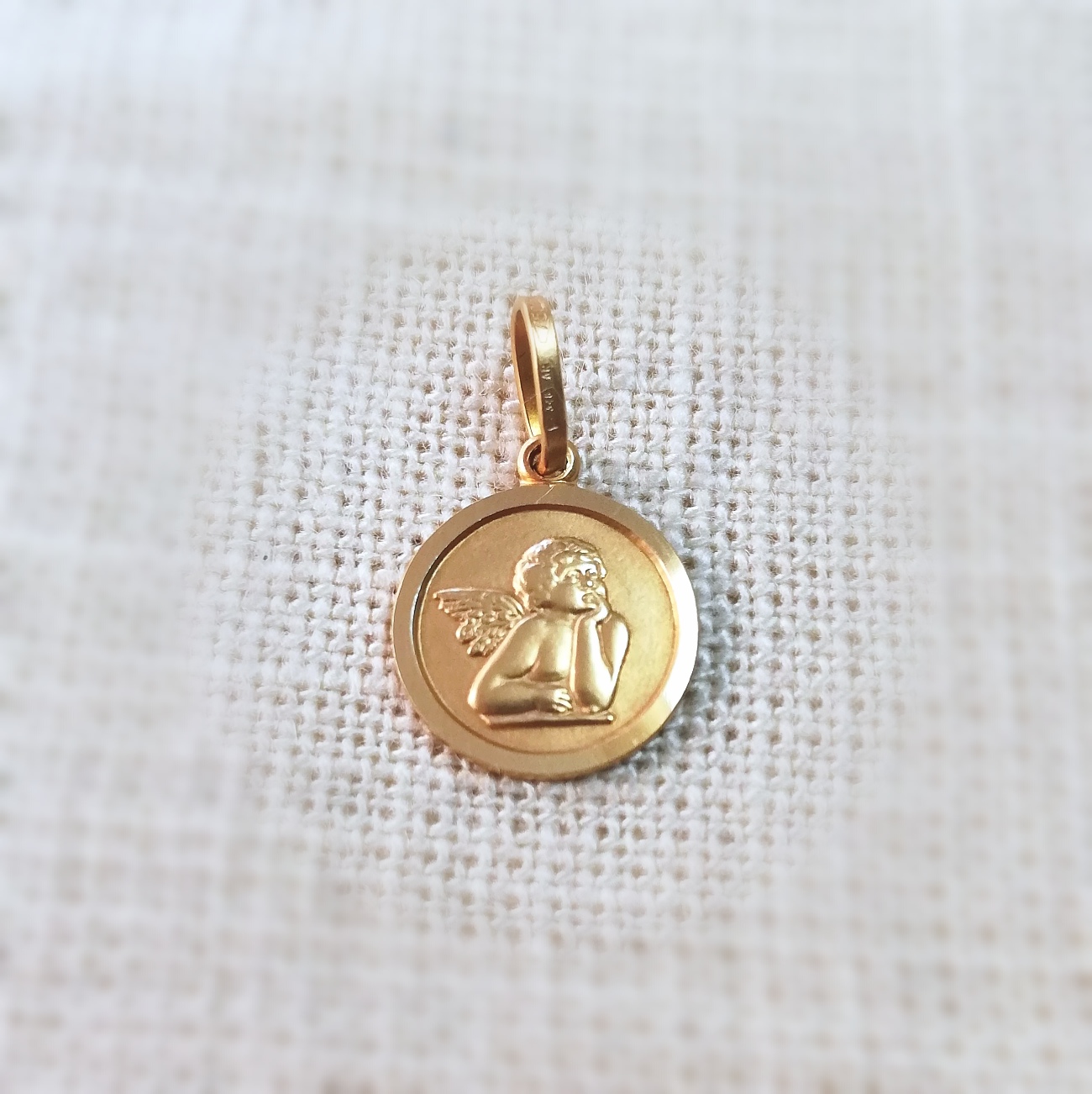 San Benito de Pie con Cordón. Oro 18k. Cordón Seda 1mm. Medalla 10mm. 0,45g.