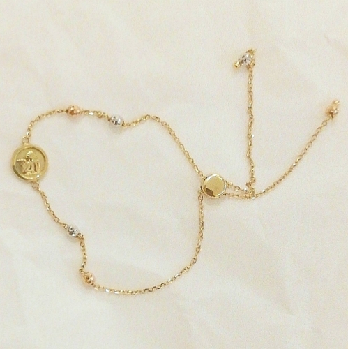 Pulsera Ajustable. Medalla Ángel Oro 18k. Tres Oros: Amarillo, Blanco y Rojo.