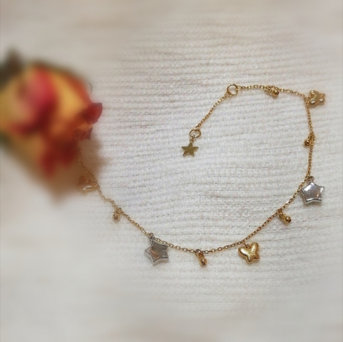 Estrellas en oro blanco con volumen. Mariposas en oro de 18k con volumen y bolitas en oro maciso. Peso: 1,97g