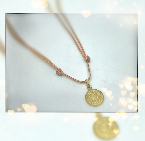 Oro 18k. Cordón Seda 1mm. Medalla 10mm. 0,45g.