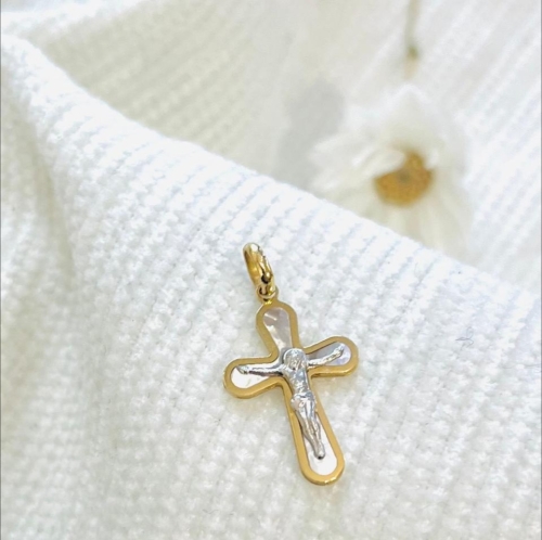 Cruz oro 18k, Nacar, y Cristo en Oro blanco