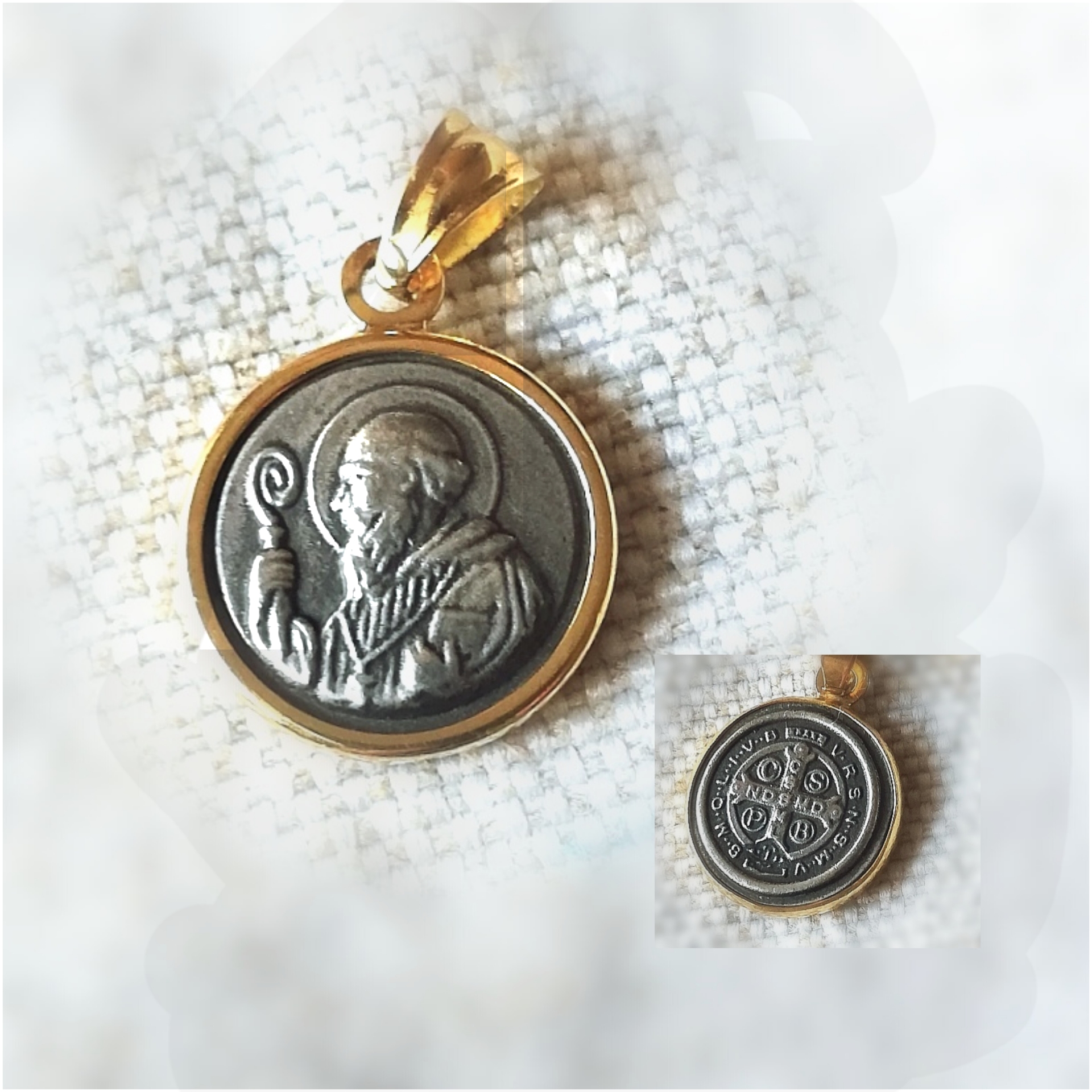 Medalla San Benito. Plata envejecida-Oro, redonda. Grueza, n°2.
