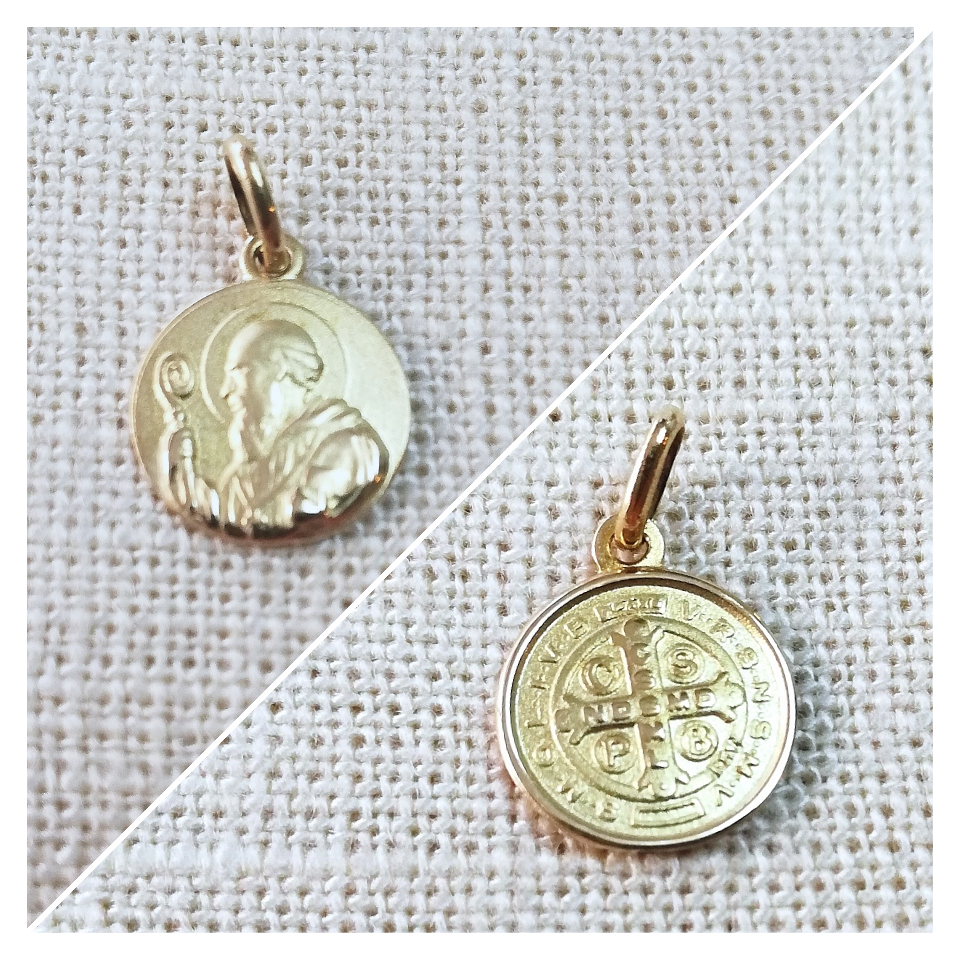 San Benito de Pie con Cordón. Oro 18k. Cordón Seda 1mm. Medalla 10mm. 0,45g.