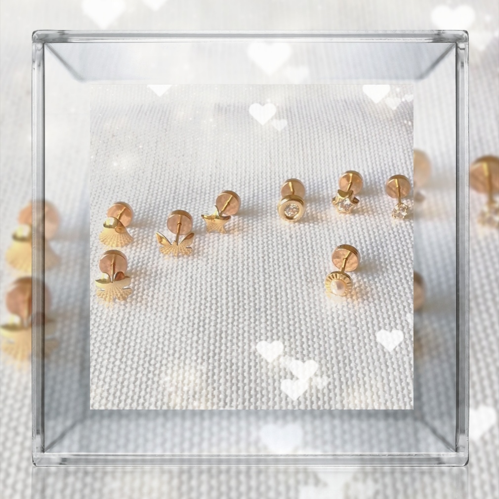 Aros Atornillados 18k, con Tope y Con Tornillo Mariposa