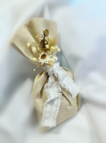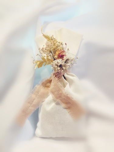 Saquitos de Lino con semilla de lavanda y decorado con flores naturales
