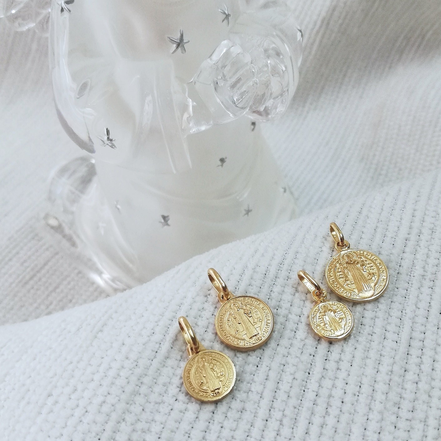 Medallas de San Benito de pie. Oro 18k.