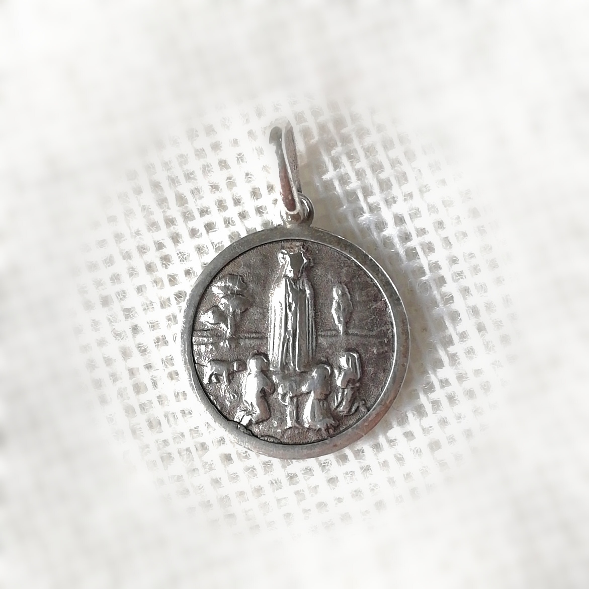 Medalla Plata Envejecida. Virgen de Fátima.